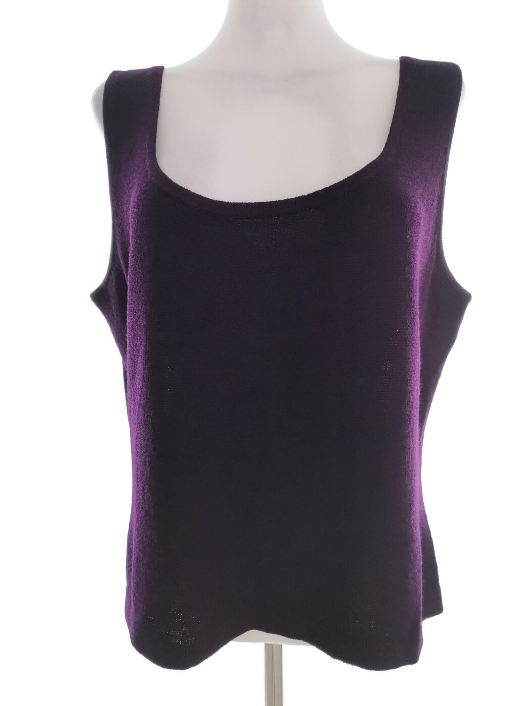ST. JOHN Rozmiar L Fioletowa Bluzka Wełna Bezrękawnik